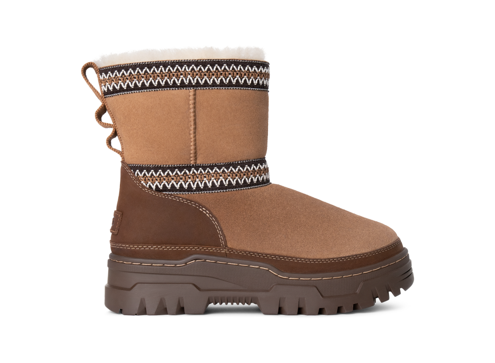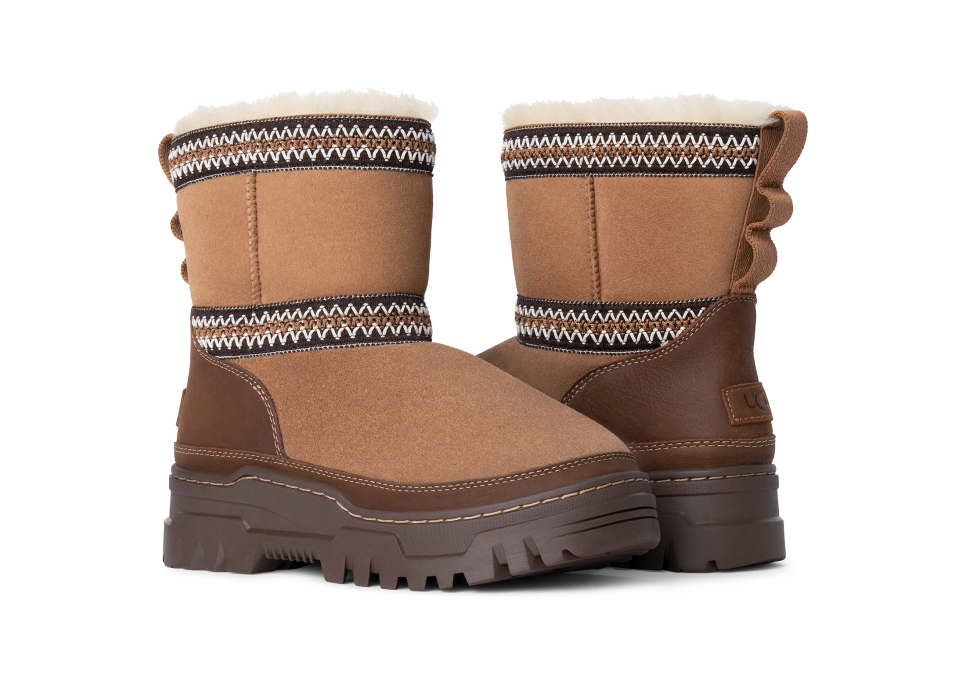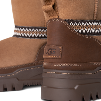 - Rear pull tab made from 100% recycled polyester fibers, utthhggbraid detailing, Suede vamp, Leather mudguard, 17mm Twinface Sheepskin shaft, Leather heel counter
